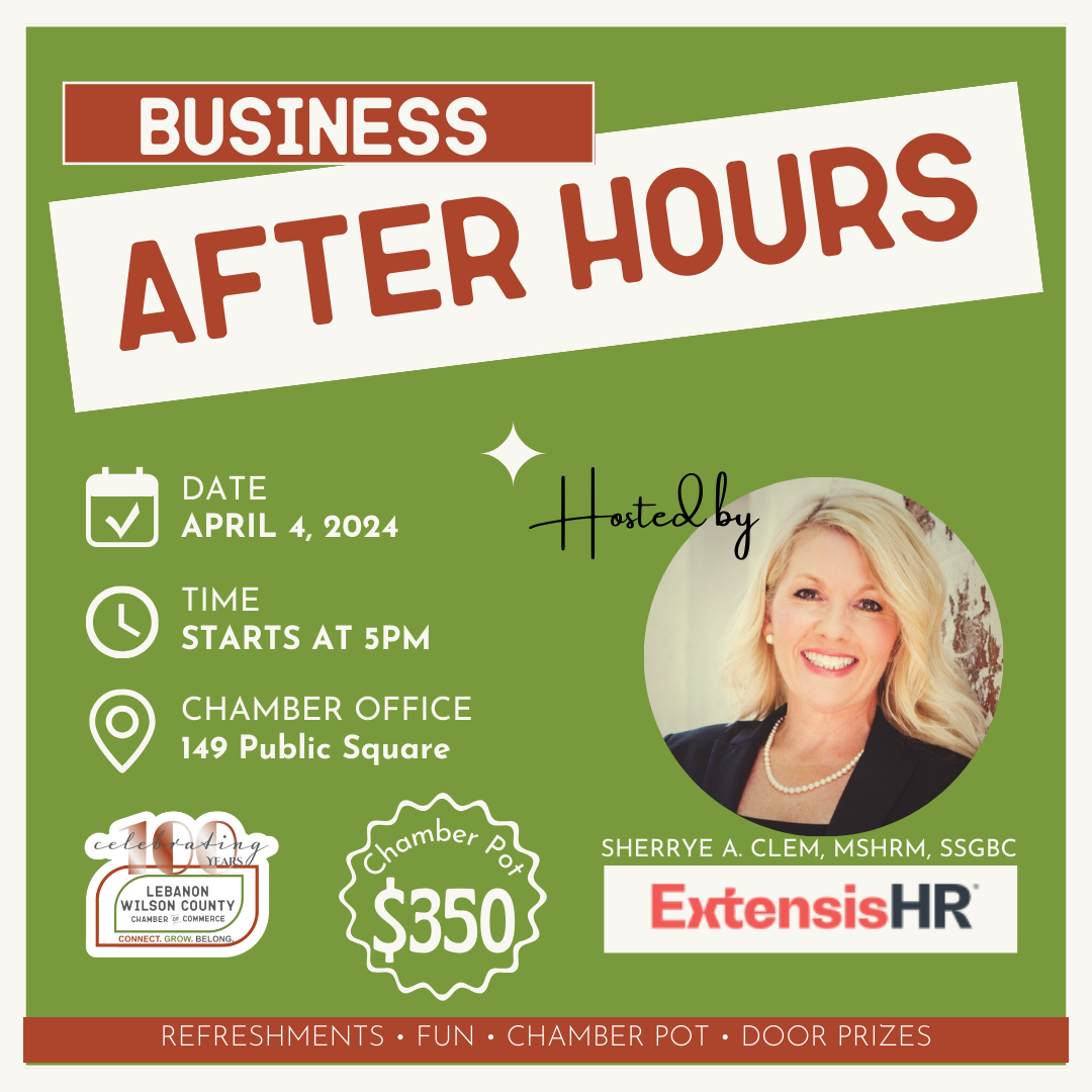 Join us for an evening of networking at our upcoming Business After Hours hosted by our friend Sherrye Clem with ExtensisHR. Connect with fellow members, explore opportunities, and enjoy the business community we are building together! See you there!
