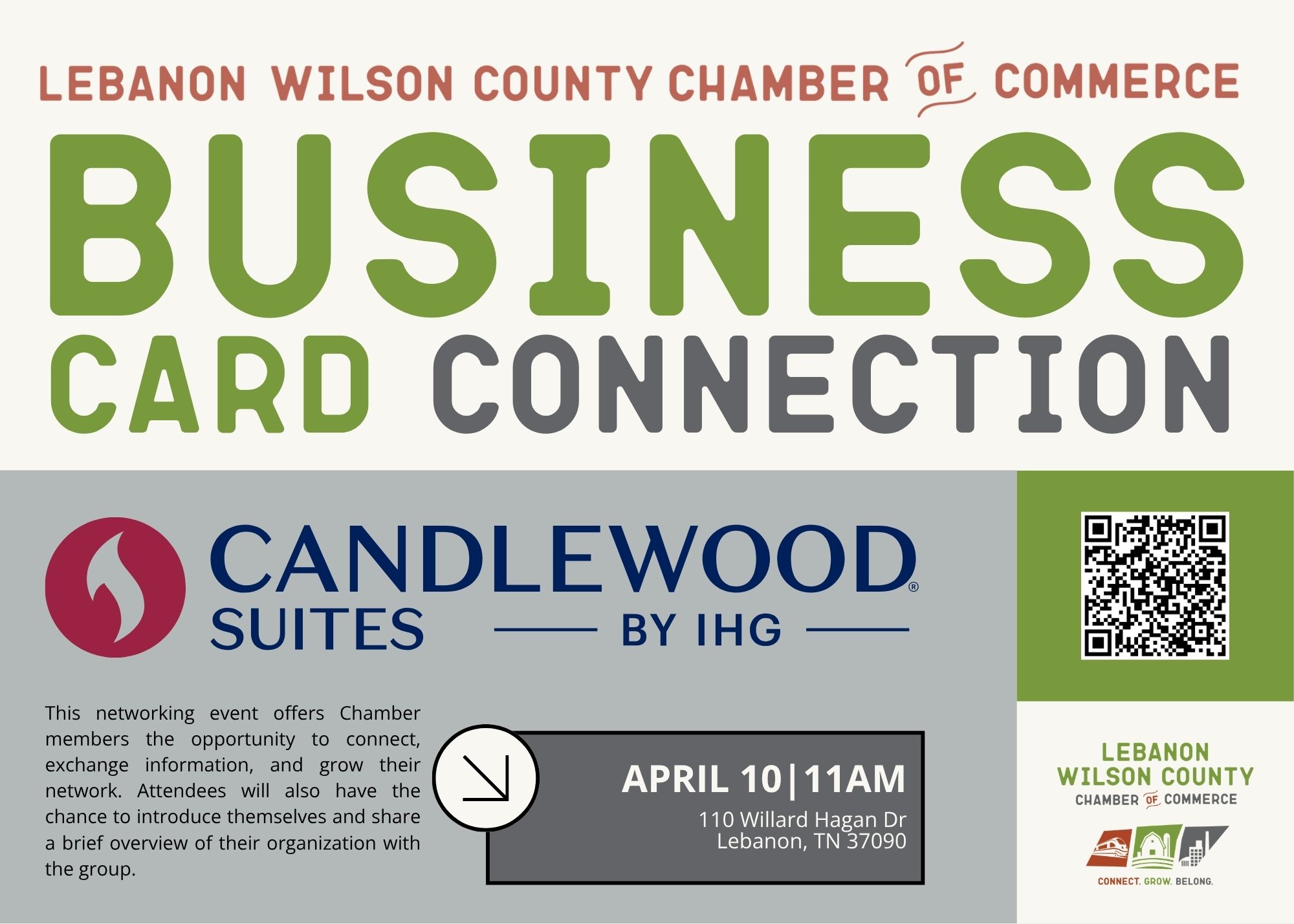 Join us for Business Card Connection, hosted by Candlewood Suites, a dynamic networking opportunity designed to help Chamber members build meaningful connections and grow their business relationships.