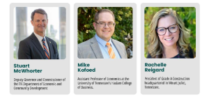 We invite you to attend the inaugural Economic Outlook Middle Tennessee forum, a collaborative event between Cumberland University and Wilson Bank & Trust. The event will feature a complimentary lunch alongside a panel discussion examining the present and projected economic landscape of Middle Tennessee, with particular emphasis on Wilson County. Our distinguished panel includes Stuart McWhorter, Deputy Governor and Commissioner of the Tennessee Department of Economic and Community Development, Mike Kofoed, Assistant Professor of Economics at the University of Tennessee Knoxville, and Rachelle Reigard, President of Grade A Construction based in Mount Juliet.