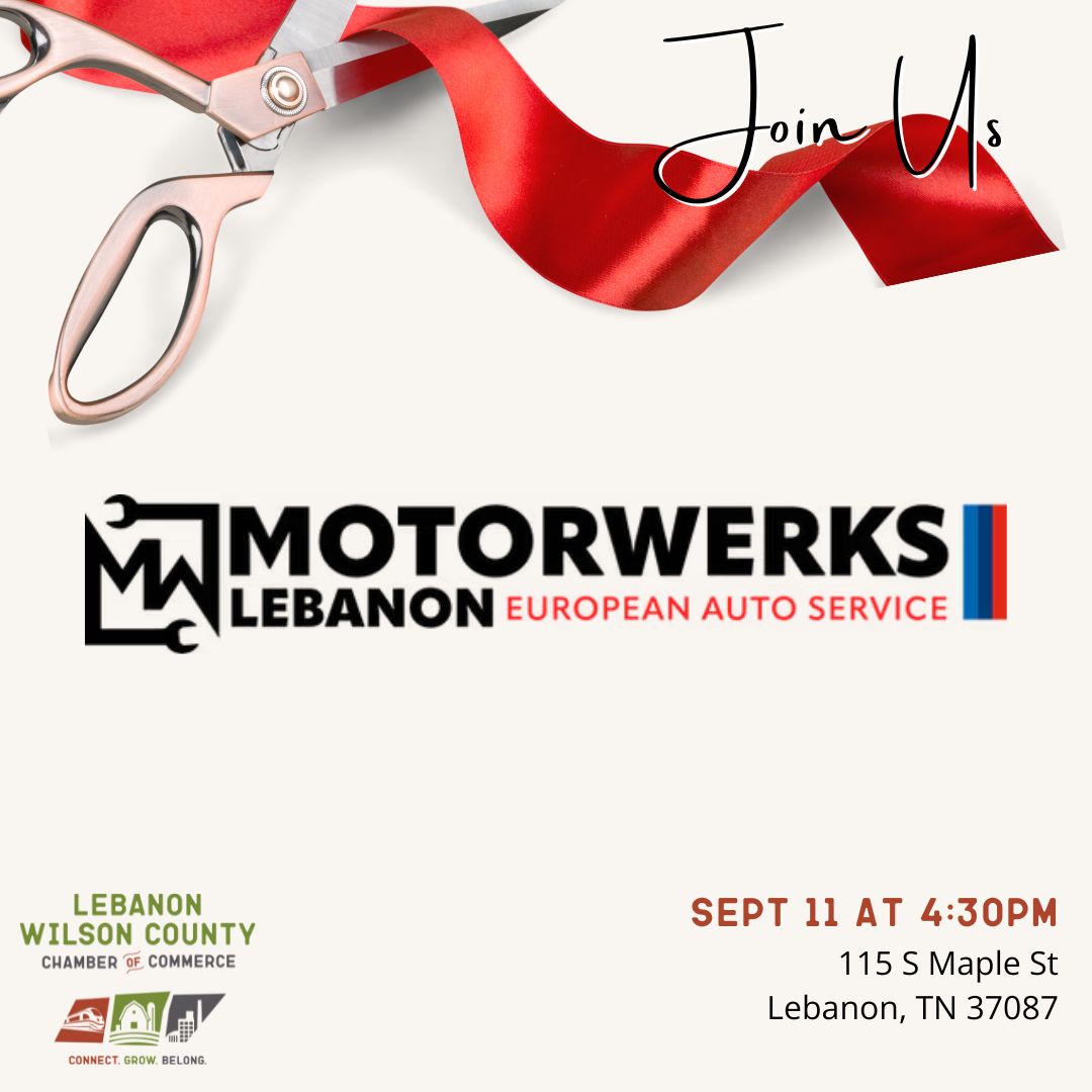 Join us as we celebrate the grand opening of Motorwerks Lebanon with an official ribbon cutting ceremony! Come meet the team, tour the shop, and help us welcome Motorwerks Lebanon to the Chamber family. Let’s celebrate this exciting new addition to our business community!