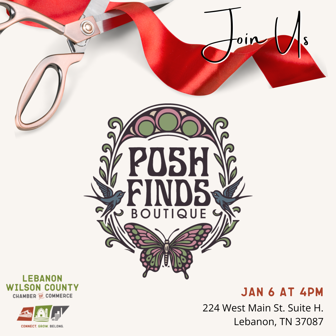 Join us for the ribbon cutting celebration at Posh Finds Boutique. Specializing in women’s apparel, accessories, and gifts, Posh Finds offers curated pieces designed to elevate your wardrobe. With a touch of vintage flair and a focus on current trends, this boutique brings a unique and stylish shopping experience to our community.