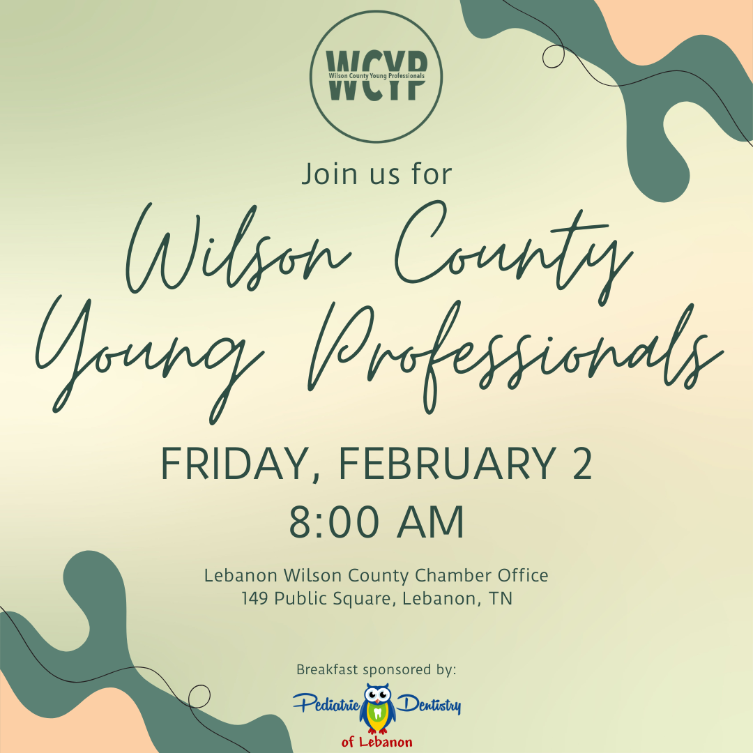 Calling all young professionals (40 and younger) living or working in Wilson County! You’re invited to our February networking event on Friday, 2/2, at 8AM at the Lebanon Wilson County Chamber Office (second floor).