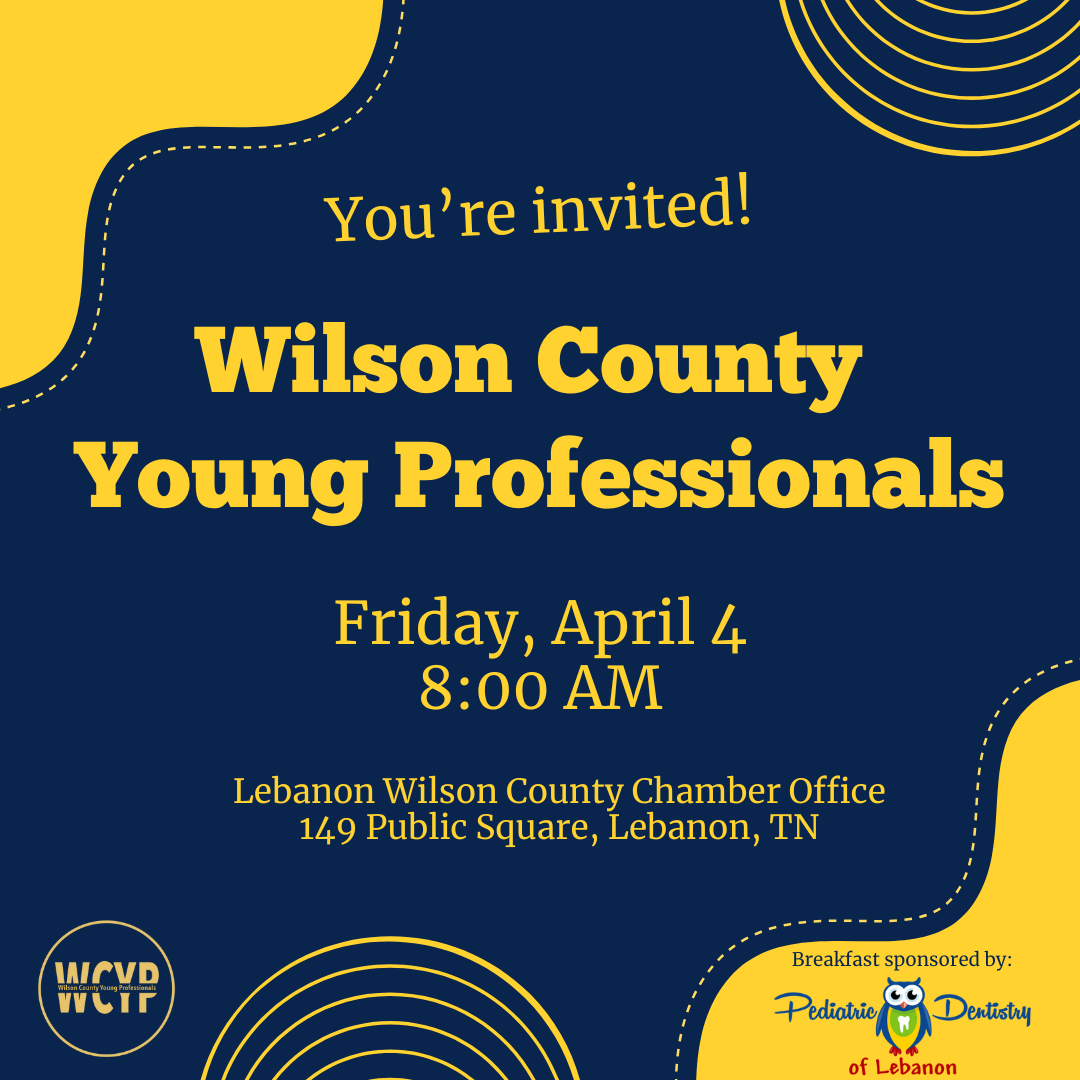 Wilson County Young Professionals provides opportunities to connect, be involved, and give back to the community. This 40 and under group meets on the first Friday of each month from 8:00-9:00 am at the Lebanon Wilson County Chamber of Commerce Office.