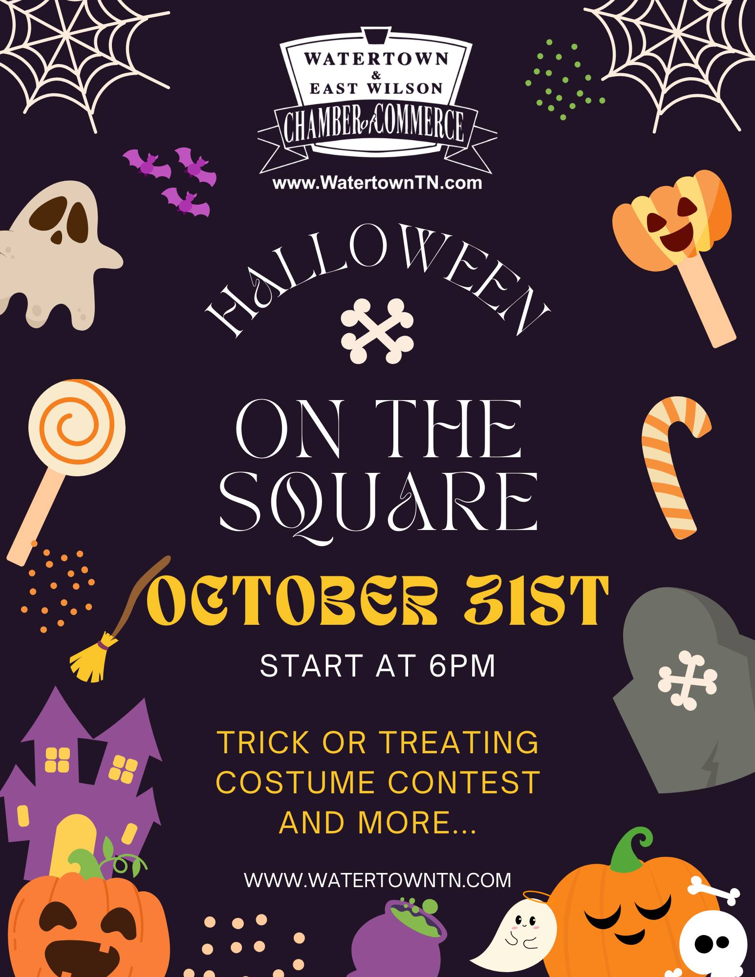 Trick-Or-Treating around the Square starts at 6:00 PM (ish) on Friday, October 31st. Costume Contest - At the Gazebo: Judging at 6:30 PM |