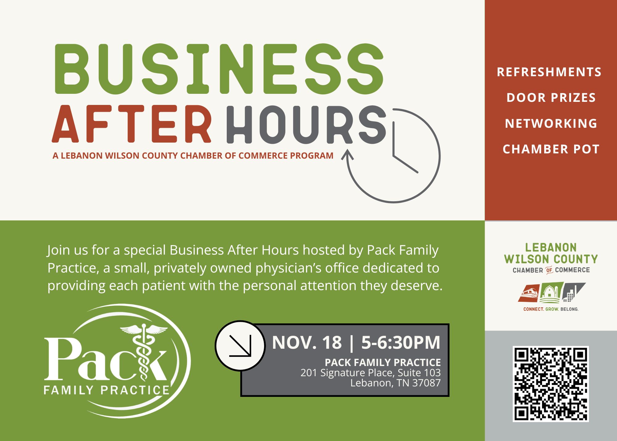Join us for a special Business After Hours hosted by Pack Family Practice, a small, privately owned physician’s office dedicated to providing each patient with the personal attention they deserve. This month’s event will be extra special as Pack Family Practice introduces their new provider to the community! Business After Hours events offer a relaxed […]