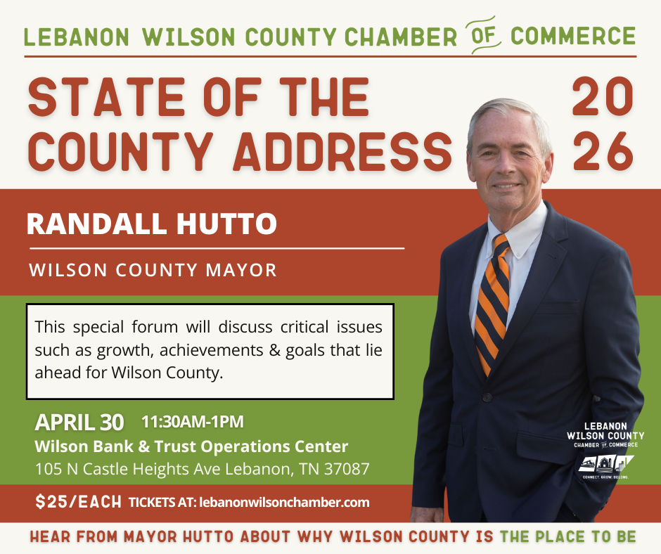 Join us for the Annual State of the County Address featuring Wilson County Mayor Randall Hutto. This important forum will highlight Wilson County’s continued growth, recent achievements and the goals […]