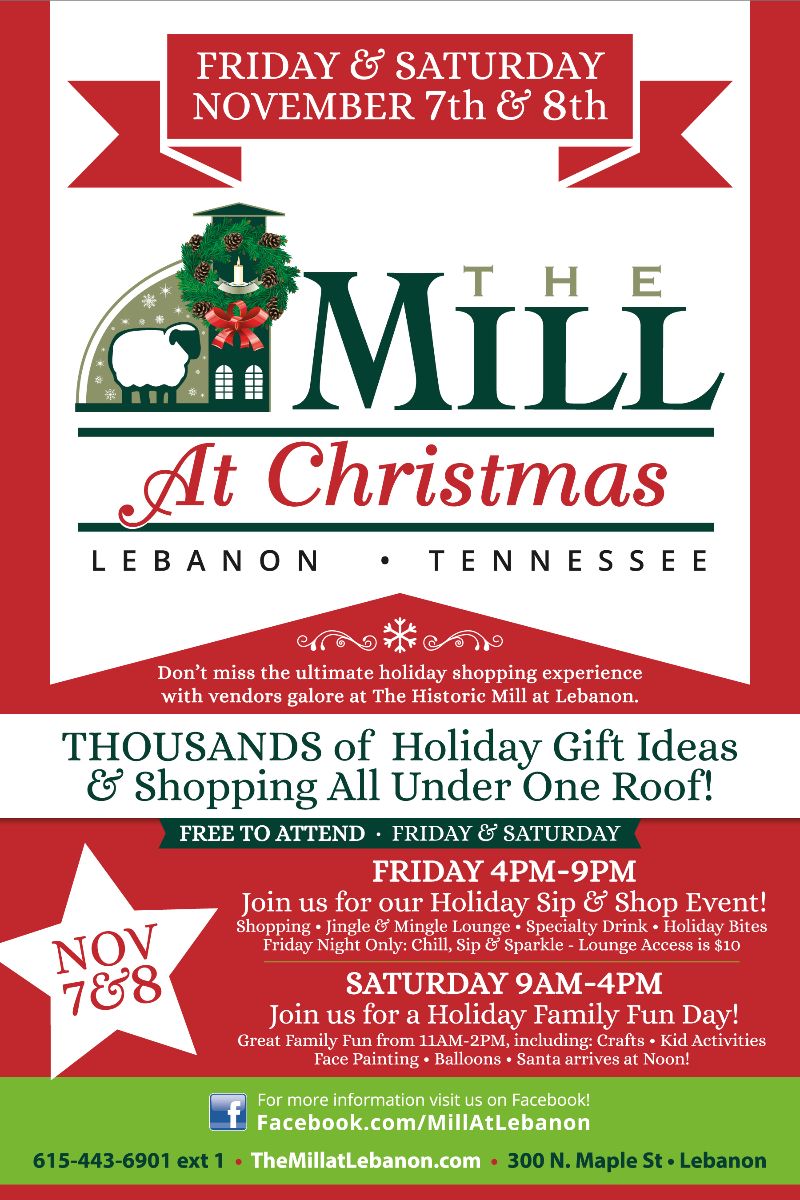 The Mill at Lebanon 300 N. Maple St., Lebanon, TNJoin us for our Holiday Celebration November 7 & 8, 2025 for the 13th Annual The Mill at ChristmasThe Mill at Christmas is a magical time of year where fun […]