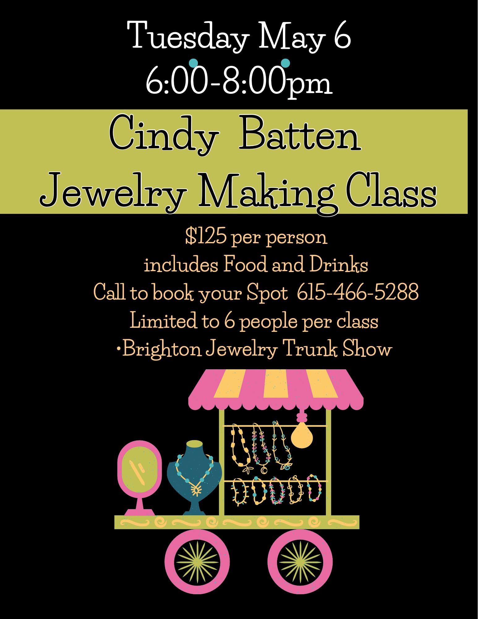 Urban Mills Boutique 126 Public Square, Lebanon, TN$125 per person includes Food and Drinks Call to book your Spot 615-466-5288 Limited to 6 people per class •Brighton Jewelry Trunk Show